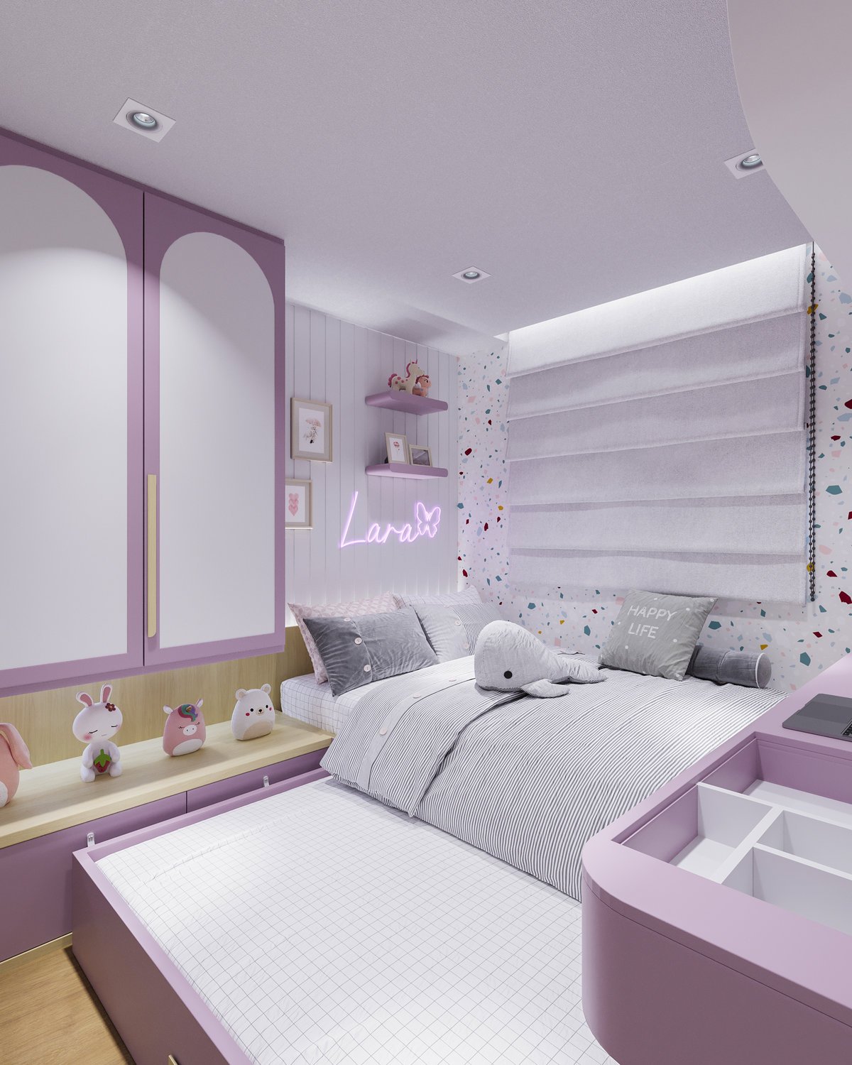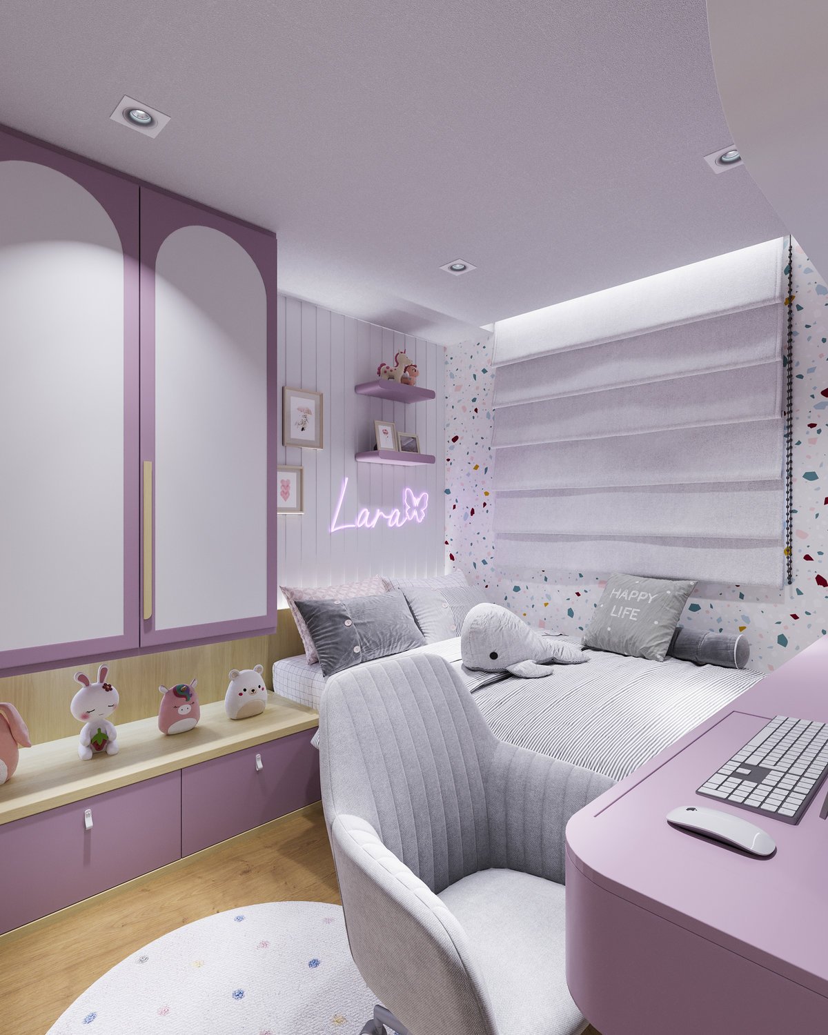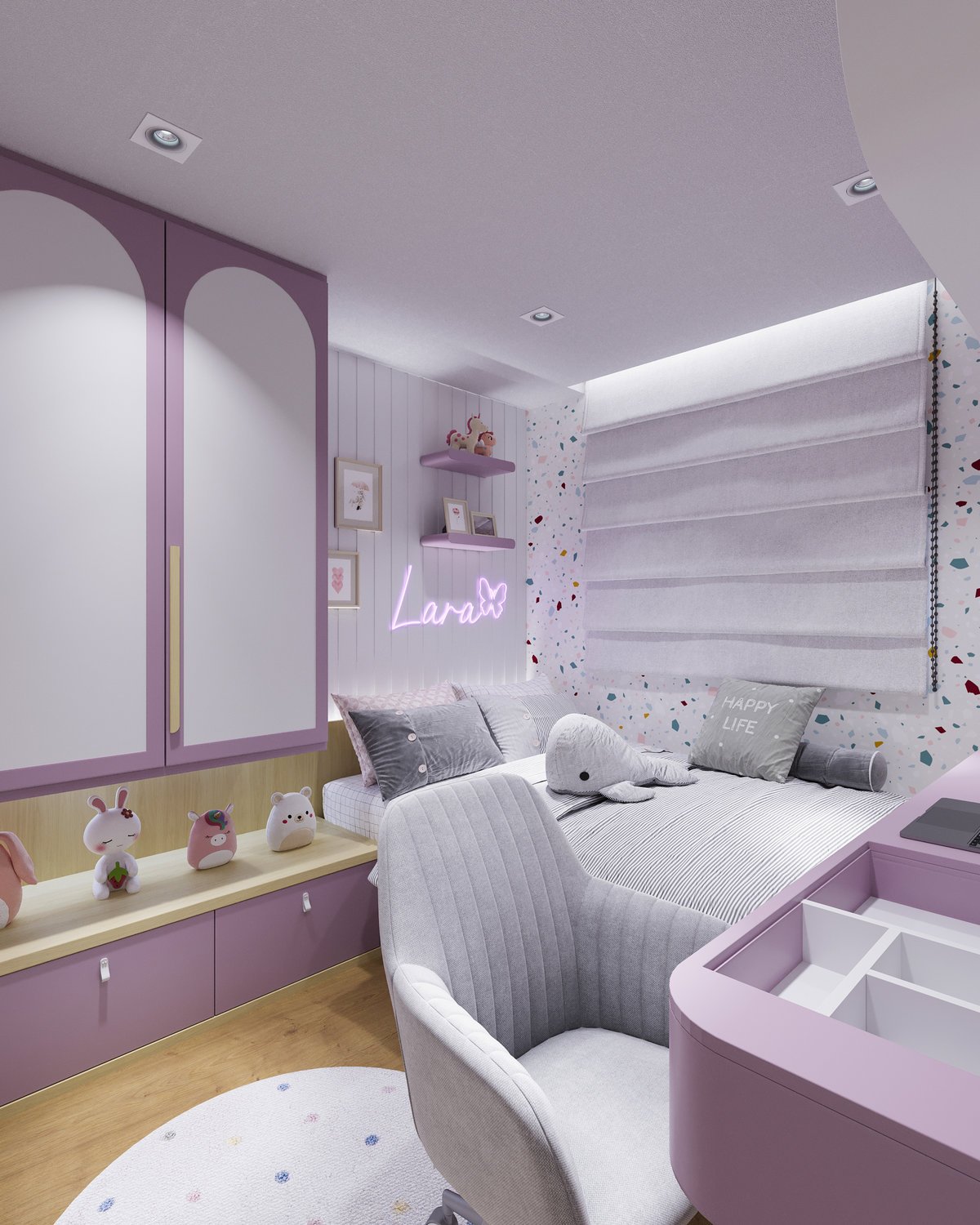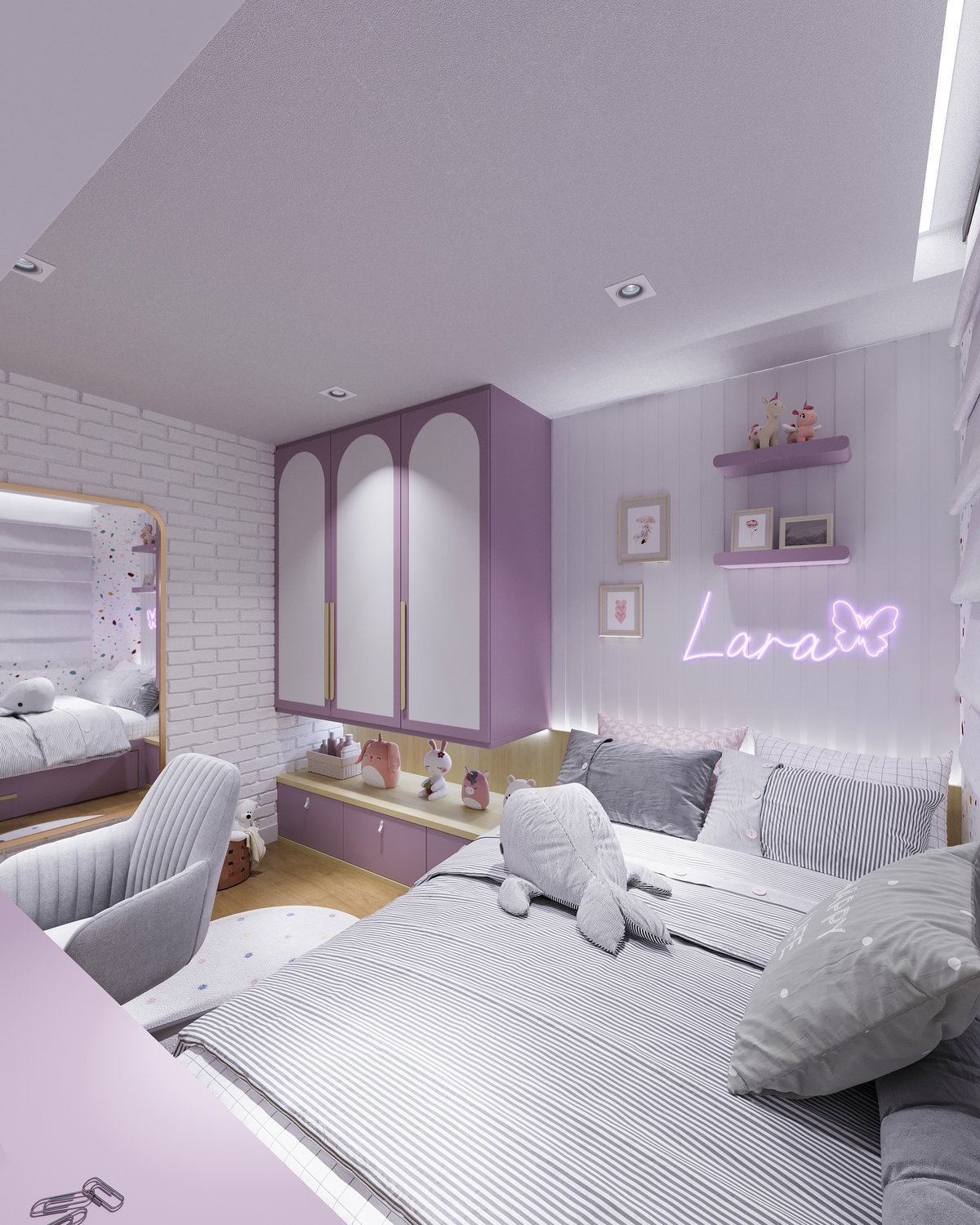 No projeto do quarto da Lara, cada detalhe foi pensado para refletir delicadeza e conforto.